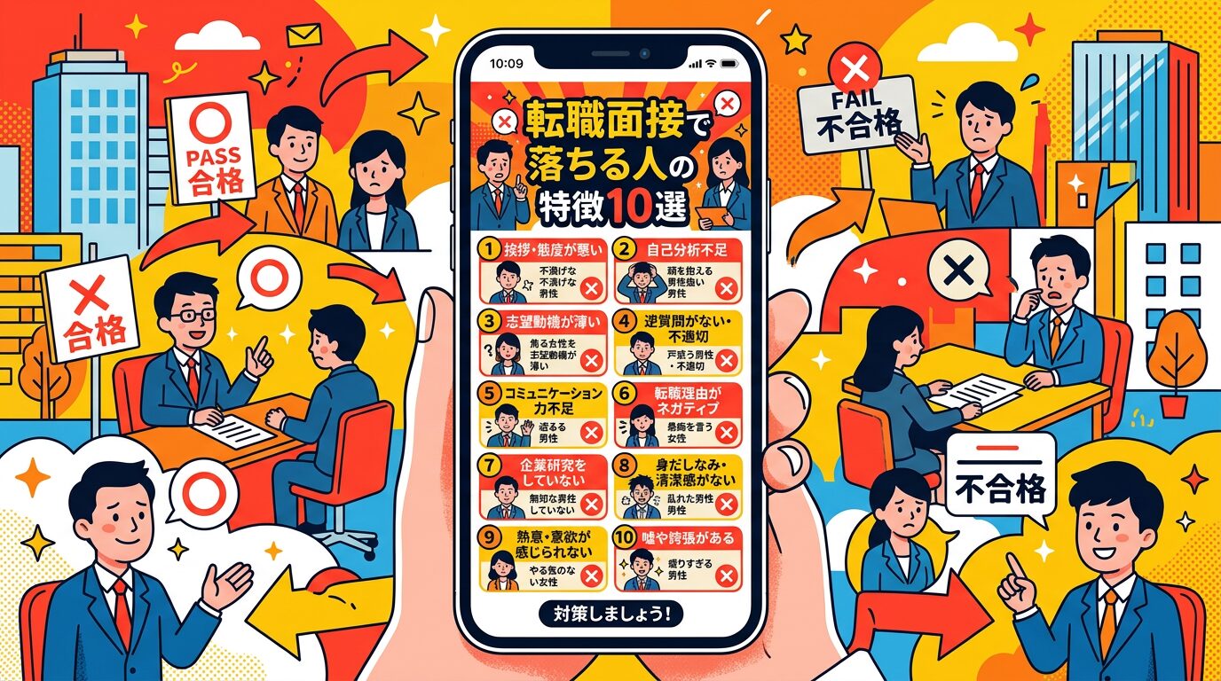この記事では、転職面接で不合格になる人の特徴10選と、合格率を高めるための具体的な対策法を完全解説します。